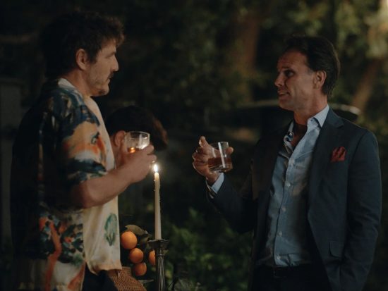 Sammy, played by the actor of the moment – Walton Goggins – is a Hollywood agent who immediately strikes us as being on the verge of a nervous breakdown, due to the major midlife crisis he’s experiencing along with career troubles. That’s why he was compelled to arrange this elegant soiree for his biggest client, Gerald, a megalomaniac cokehead film director embodied to obnoxious perfection by stage and screen veteran Rufus Sewell.