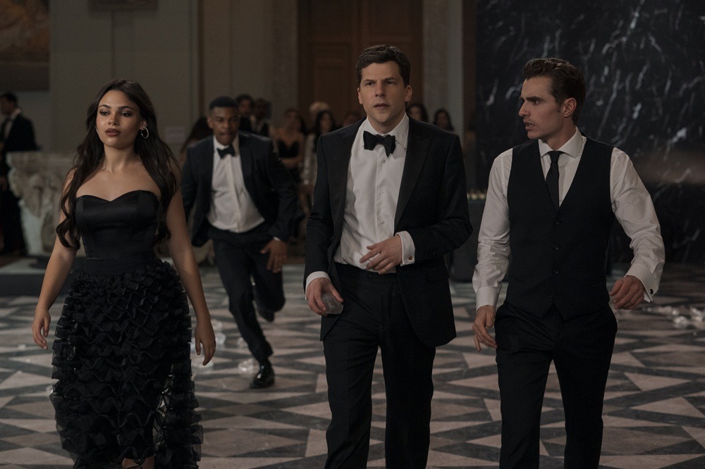The film stars Jesse Eisenberg, Woody Harrelson, Dave Franco, Isla Fisher, Justice Smith, Dominic Sessa, Ariana Greenblatt, with Rosamund Pike, and Morgan Freeman.