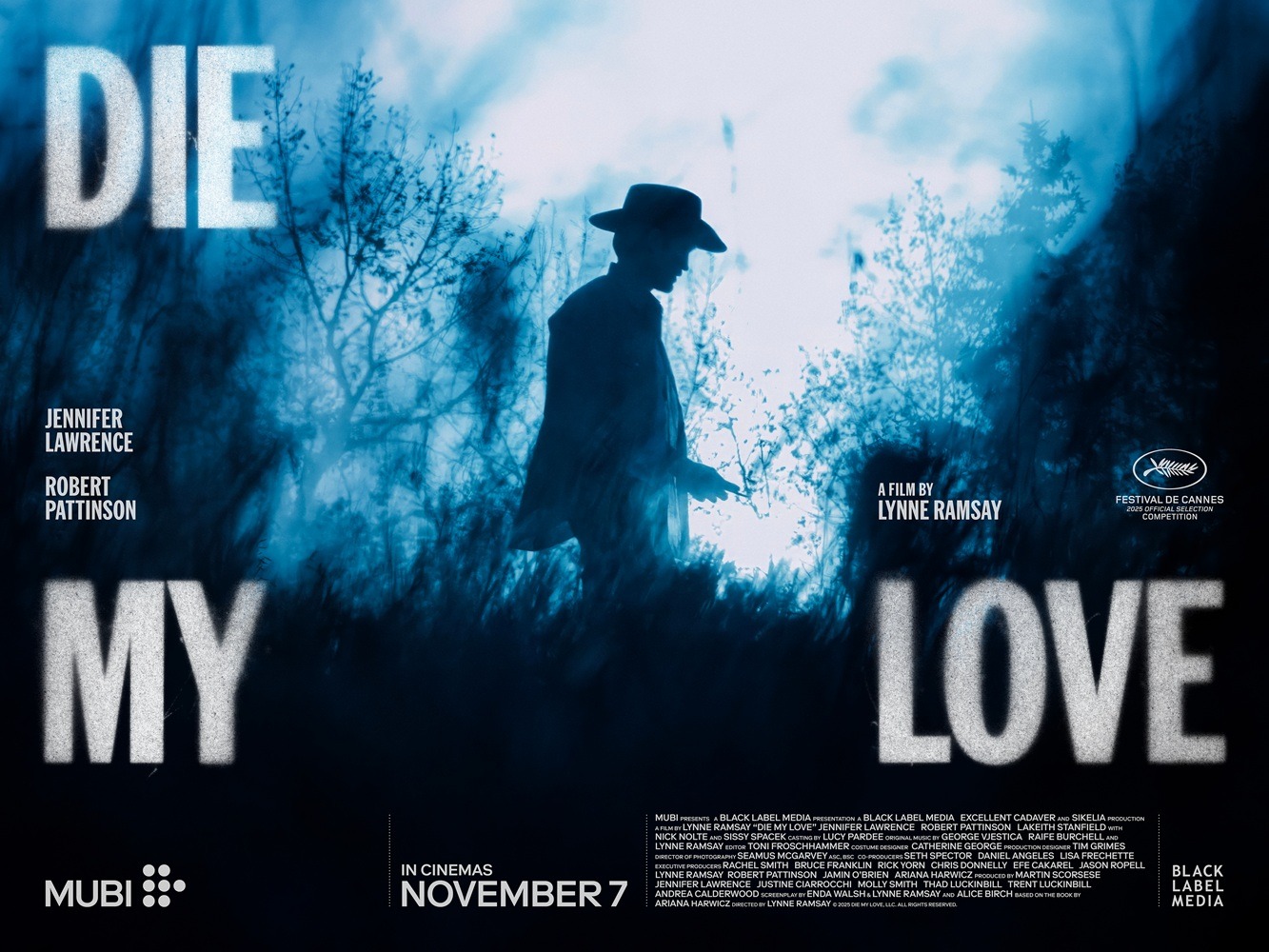 Set in rural America, Die My Love is a portrait of a woman engulfed by love and madness. It stars Jennifer Lawrence (Silver Linings Playbook, American Hustle), Robert Pattinson (Mickey 17, The Batman), LaKeith Stanfield (Judas and the Black Messiah, The Book of Clarence), Nick Nolte (Cape Fear, 48 Hours, The Prince of Tides), and Sissy Spacek (Carrie, Coal Miner’s Daughter, In the Bedroom).