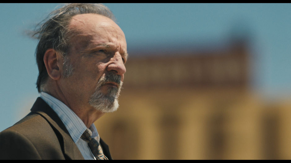 An abandoned cinema looks amazing, both visually intriguing but also echoing that melancholy of Alex, something that has seen better days but once had happy purpose, but retains a certain kind of beauty even in decay. Even a simple night shot, the camera gazing at the motel, the two rooms side by side, Alex in one, Renny and Susie in the adjoining one, a symmetrical pattern of doors and windows, both in their own rooms but watching the same film on TV, the flickering light creating identical patterns on their night-time windows. It’s only a moment, but it’s a beautiful shot and hints at the depth of care lavished by Erkman, Keitel and the rest of their crew on each frame of footage.