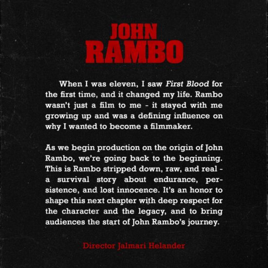 John Rambo – The prequel film from the director of Sisu – is now in production.